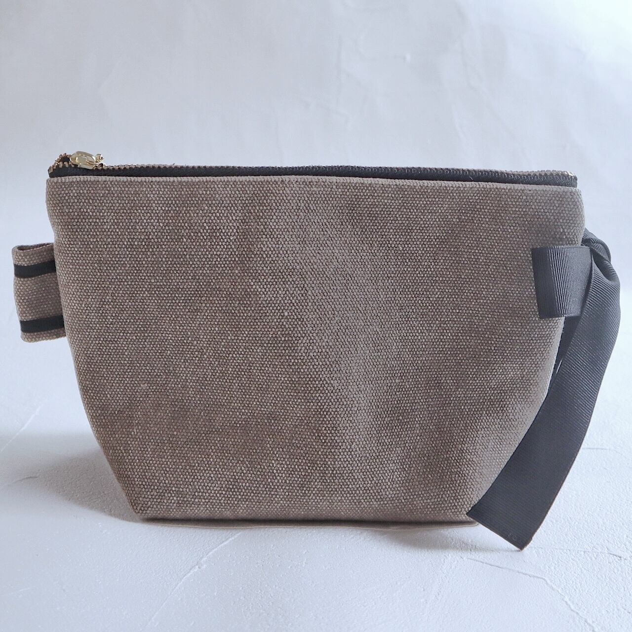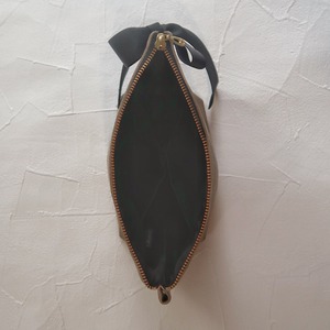 シンプルな見た目ながら、ダブルラインのタブ、グログランリボンでワンランク上のポーチとなっております。