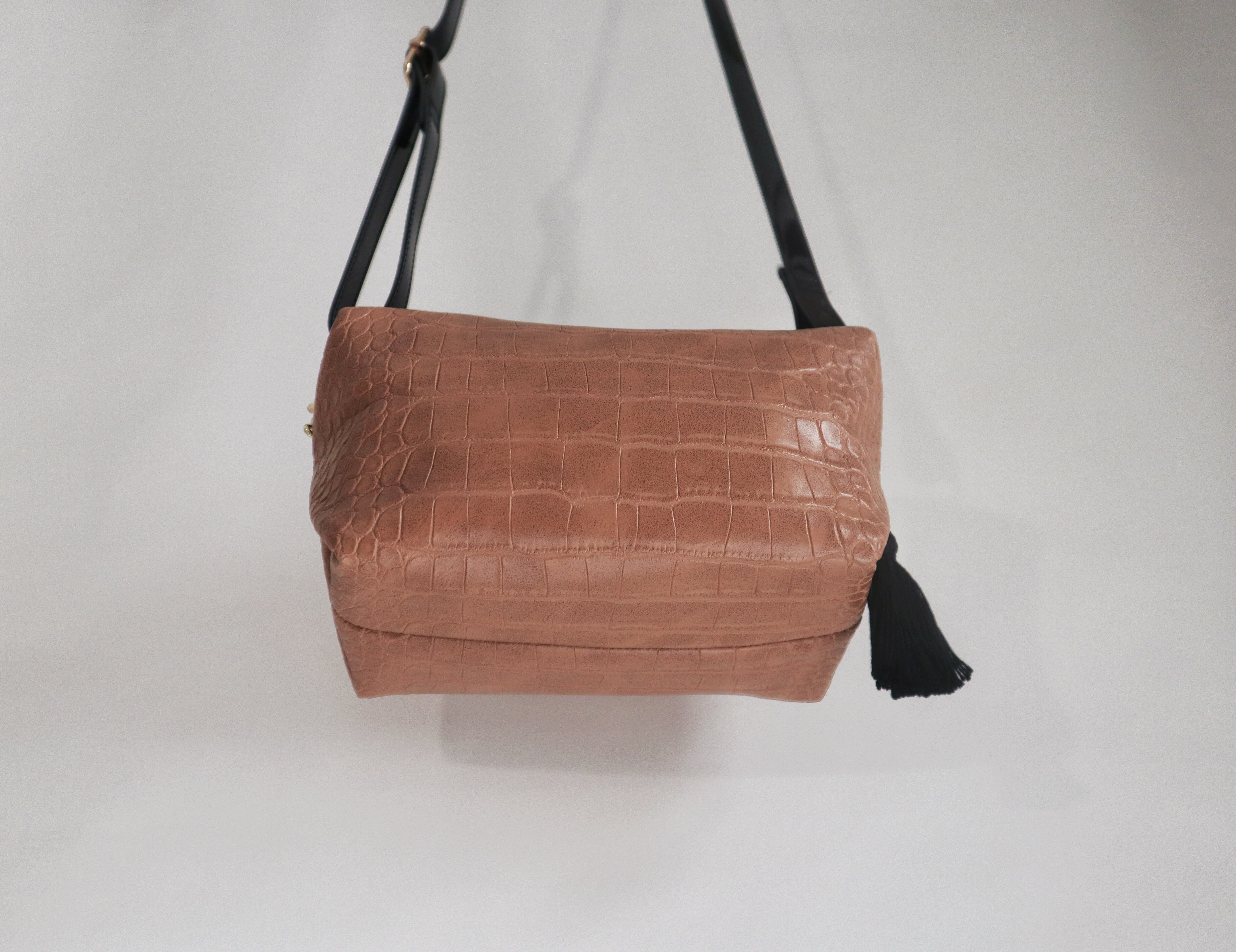 キャラメルポーチエナメルショルダー クロコキャメル ✴︎全国一律送料無料✴︎
