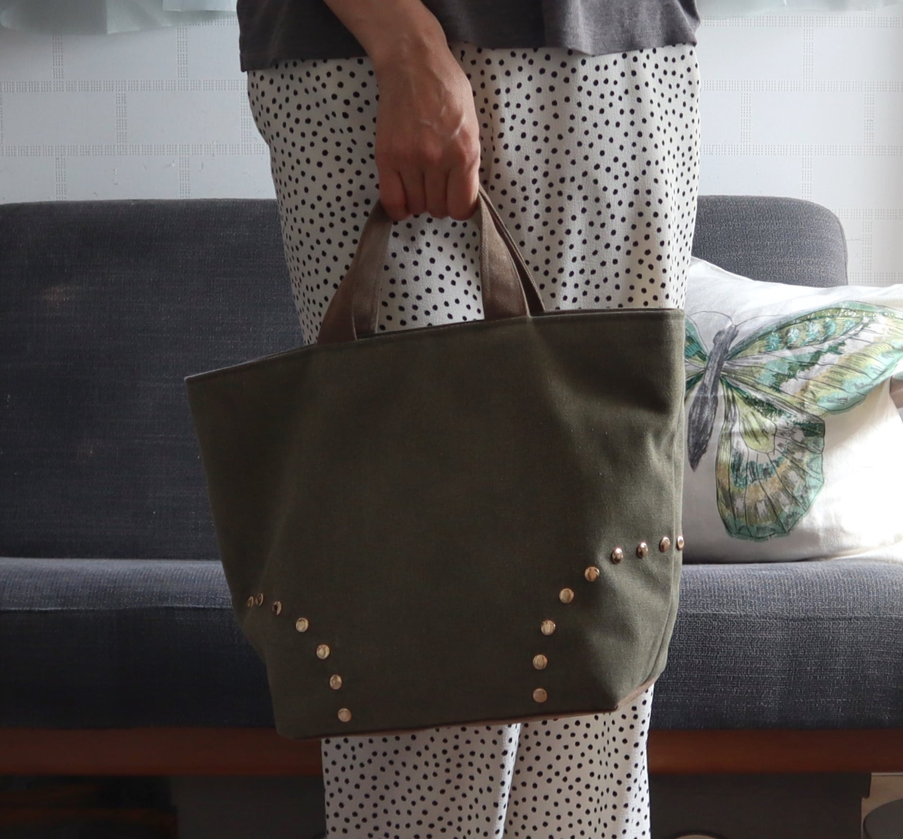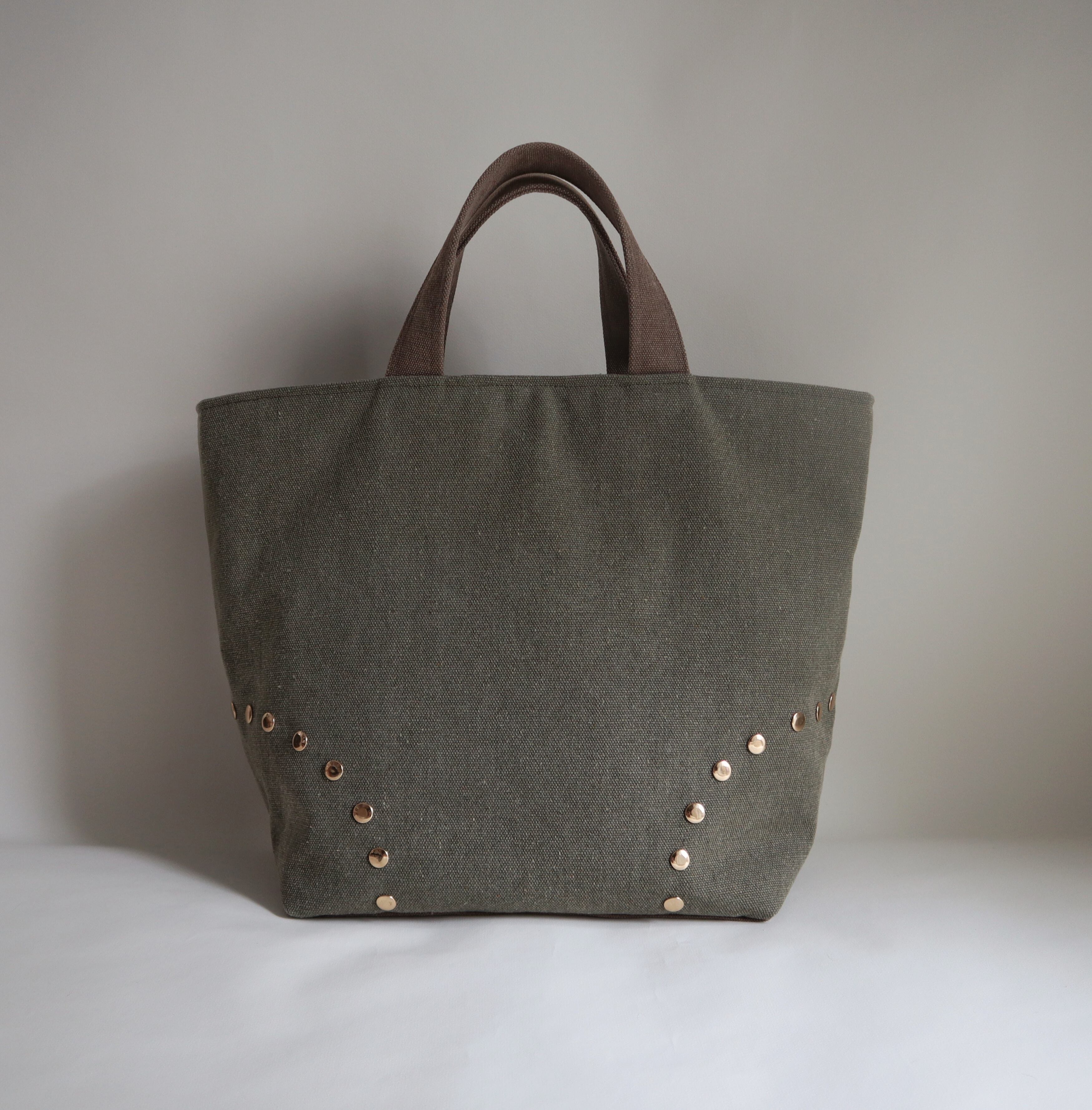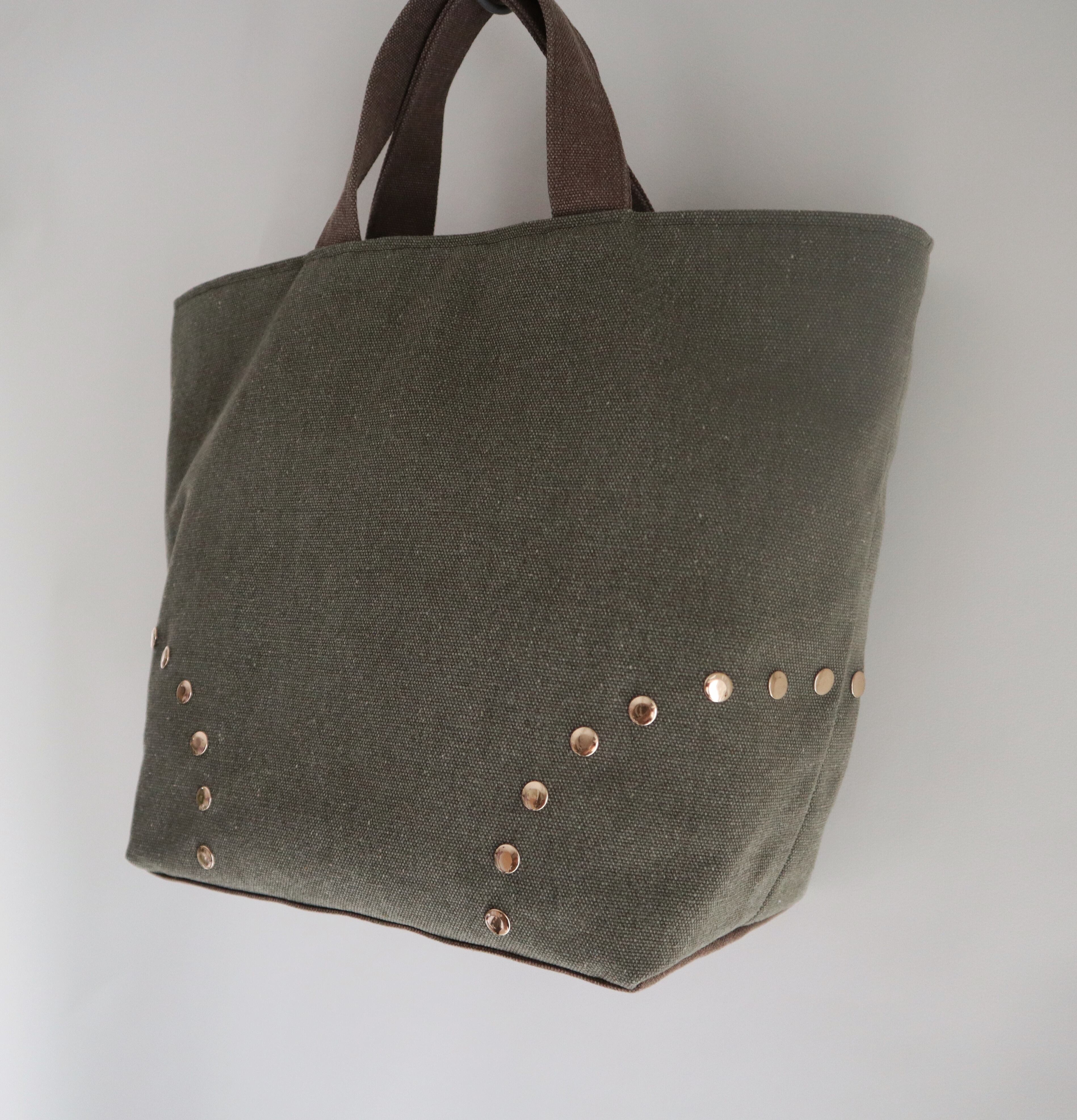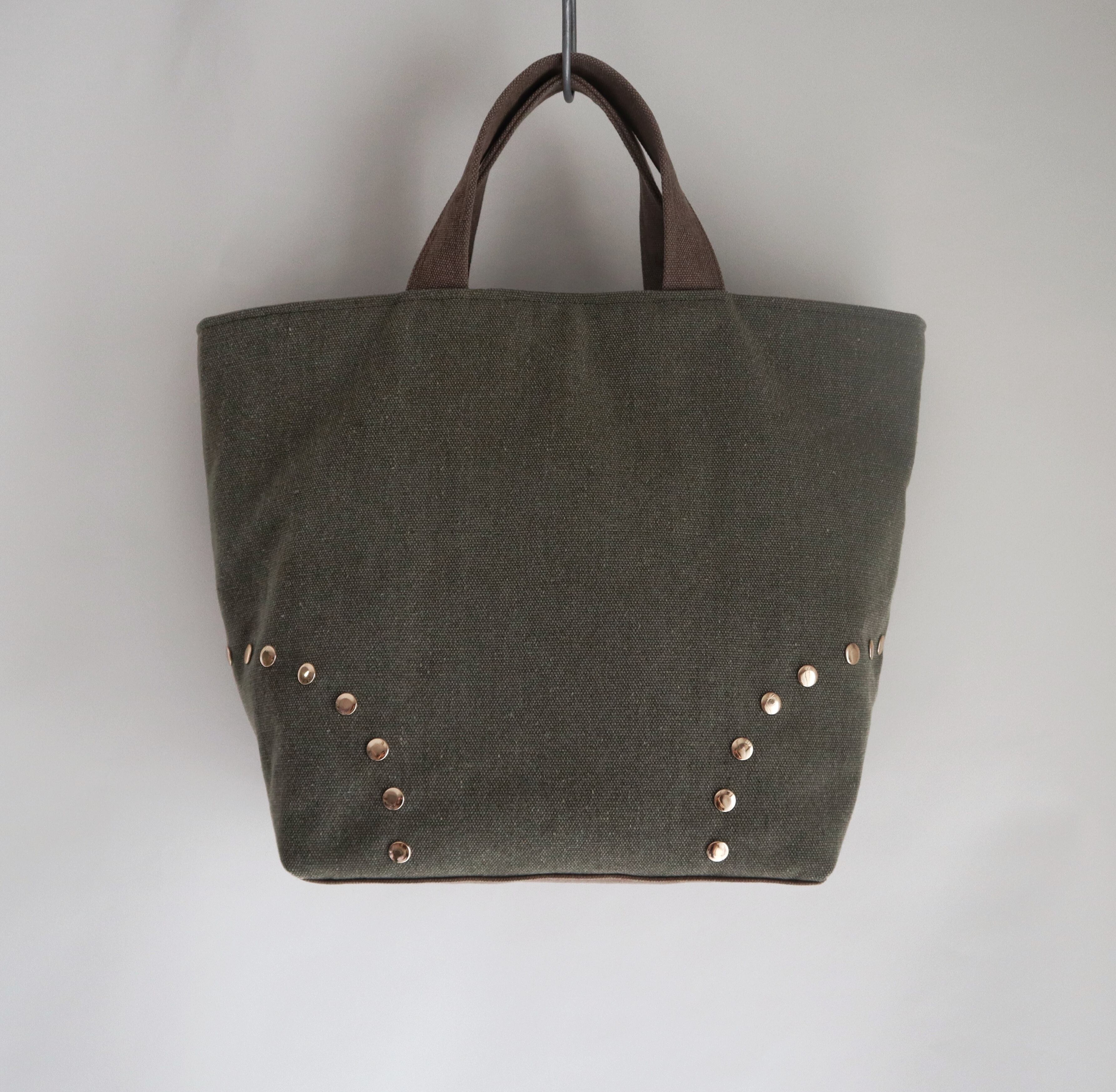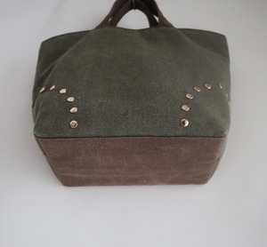 スタッズバイカラートート♦︎カーキ×ブラウン♦︎